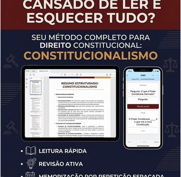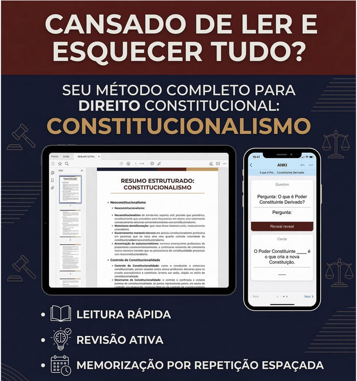 Um resumo direto de Constitucionalismo para graduação e provas: do antigo ao neoconstitucionalismo, com recortes de STF e pegadinhas clássicas de banca. Você recebe um PDF organizado para revisão rápida e um deck ANKI pronto para importar, com perguntas e respostas (incluindo cards de completar a frase), para fixar os conceitos sem depender de “decoreba”.